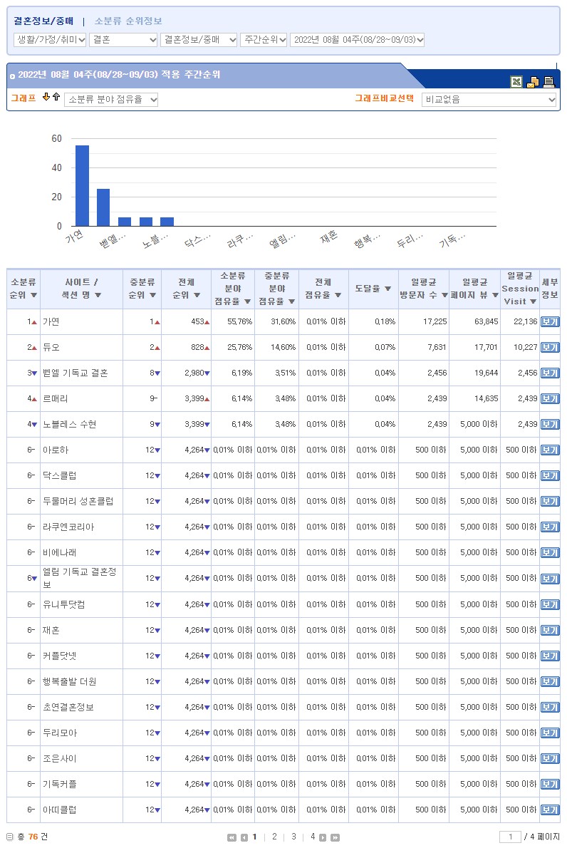 ÀÌÀü±Û ·©Å°´åÄÄ °áÈ¥Á¤º¸/Á߸Šȸ»ç ºÐ¾ß 22³â 9¿ù 3ÁÖÂ÷ °áÈ¥Á¤º¸È¸»ç ¼øÀ§ 1À§ °¡¿¬ °áÈ¥Á¤º¸, 2À§ µà¿À, 3À§ ³ëºí·¹½º ¼öÇö