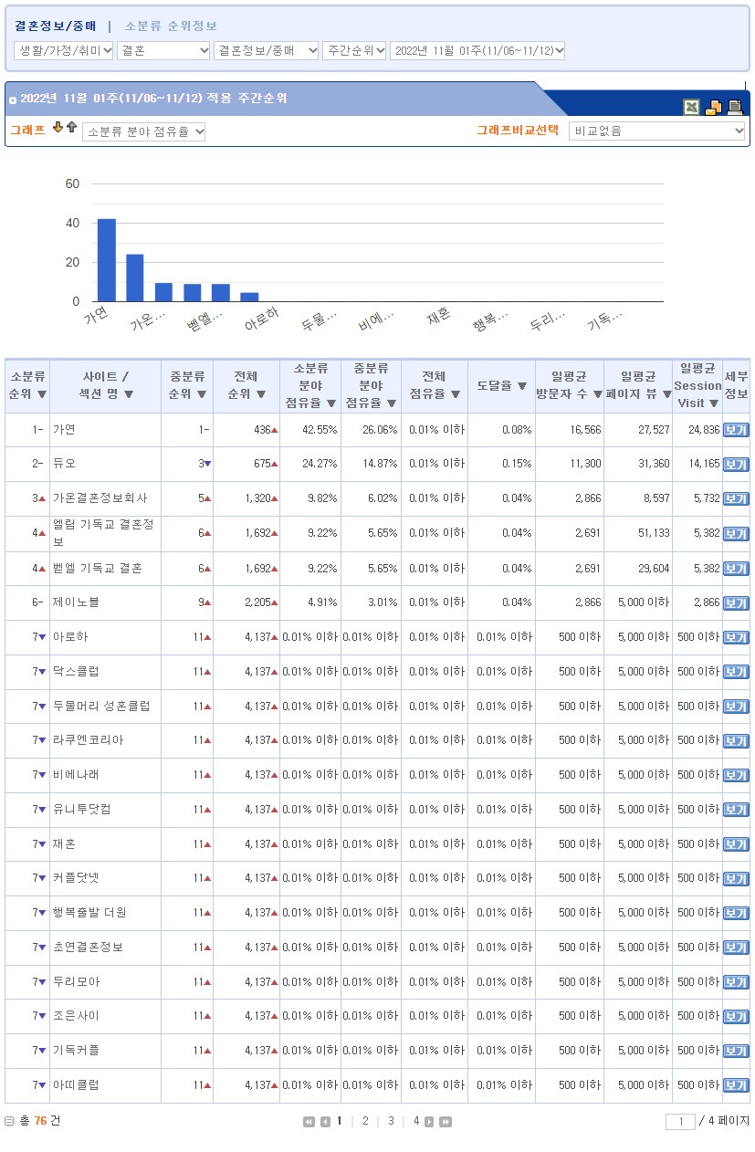 ·©Å°´åÄÄ °áÈ¥Á¤º¸/Á߸Šȸ»ç ºÐ¾ß 22³â 11¿ù 1ÁÖÂ÷ °áÈ¥Á¤º¸È¸»ç ¼øÀ§ 1À§ °¡¿¬ °áÈ¥Á¤º¸, 2À§ µà¿À, 3À§ °¡¿Â°áÈ¥Á¤º¸È¸»ç