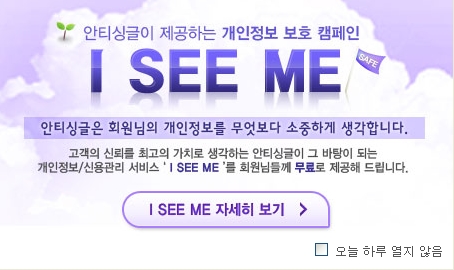 2011³â 5¿ù 16ÀÏ ´ç½ÅÀÇ ½Å¿ëµî±ÞÀº ¸î µî±Þ? ¹«·áÁ¶È¸ ÇØº¸ÀÚ ½Å¿ëÄ«µå »ç¿ëÀÌ 20³â°£ 10¹è °¡±îÀÌ Áõ°¡Çϰí, ½ÅÈ¥ Áý ¸¶·Ã ÇÒ ¶§ ´ëÃâÀº ±âº»À¸·Î ¹«¾ùº¸´Ù °³ÀÎÀÇ ½Å¿ëÀÌ Áß¿äÇÑ ¿äÁò, ´©±¸³ª ÇѹøÂëÀº ÀÚ½ÅÀÇ ½Å¿ëµî±ÞÀÌ ¾î¶»°Ô µÇ´ÂÁö, Ȥ½Ã³ª ³ªµµ ¸ð¸£´Â ´ëÃâÀ̳ª Çö±Ý¼ºñ½º ³»¿ªÀº ¾ø´ÂÁö ±Ã±ÝÇØ º» ÀûÀÌ ÀÖÀ» °ÍÀÌ´Ù. °áÈ¥Á¤º¸È¸»ç °¡¿¬(´ëÇ¥ÀÌ»ç ±è¿µÁÖ, www.gayeon.com)°ú ¿Â¶óÀÎ¹ÌÆÃ»çÀÌÆ® ¾ÈƼ½Ì±Û(www.antisingle.com)ÀÌ ¼¿ï½Å¿ëÆò°¡Á¤º¸¢ß¿Í Á¦ÈÞ¸¦ ¸Î°í ÀÚ½ÅÀÇ ½Å¿ëÀ» ¹«·á·Î Á¶È¸ÇÒ ¼ö ÀÖ´Â ¡®I SEE ME¡¯ Ä·ÆäÀÎÀ» ½ÃÀÛÇÑ´Ù°í 16ÀÏ ¹àÇû´Ù. ¡®¼ÒÁßÇÑ ³» Á¤º¸¿Í ½Å¿ë, ½º¸¶Æ®ÇÏ°Ô Á÷Á¢ ÁöŰÀÚ!¡¯¶ó´Â ½½·Î°ÇÀ¸·Î ÁøÇàµÇ´Â À̹ø Ä·ÆäÀÎÀº °¢ ±â°ü¿¡¼ À¯·á·Î Á¦°øµÇ°í ÀÖ´Â ¼ºñ½º¸¦ Ƚ¼ö¿Í »ó°ü¾øÀÌ ¹«·á·Î Á¦°øÇÏ¿© °³ÀÎÁ¤º¸¿Í ½Å¿ëÀÇ Á߿伺À» Àϱú¿ìÀÚ´Â ÃëÁö·Î ½ÃÀ۵ƴÙ. °¡¿¬°áÈ¥Á¤º¸¿Í ¾ÈƼ½Ì±ÛÀº ȸ¿ø °³°³ÀÎÀÇ ½Å¿ë°ú °³ÀÎÁ¤º¸ÀÇ Á߿伺À» Àϱú¿öÁÖ´Â Ä·ÆäÀÎÀ» ÁøÇàÇÔ°ú µ¿½Ã¿¡ ±âÁ¸ ¹ÌÈ¥, ÇзÂ, ÀçÁ÷ ½Å¿øÀÎÁõ ¼ºñ½º¸¦ ´õ¿í °ÈÇØ ¿ÀÇÁ¶óÀÎÀº ¹°·Ð ¿Â¶óÀο¡¼µµ ½Å¿ë°ú ½Å¿øÀÌ È®ÀÎµÈ »ç¶÷°úÀÇ ¹ÏÀ» ¼ö ÀÖ´Â ¸¸³²À» ÁÖ¼±Çϱâ À§ÇØ ÇÑÃþ ³ë·Â ÇÒ °èȹÀ̶ó°í ÀüÇß´Ù. °áÈ¥Á¤º¸È¸»ç °¡¿¬ÀÇ ±è¿µÁÖ ´ëÇ¥ÀÌ»ç´Â ¡°»óÈ£°£ÀÇ ½Å·Ú°¡ ±âº»ÀÌ µÇ´Â ¹ÌÈ¥³²³àÀÇ ¸¸³²À» ÁÖ¼±Çϸç, °í°´ÀÇ ½Å·Ú¸¦ ÃÖ°íÀÇ °¡Ä¡·Î »ý°¢ÇÏ´Â °æ¿µÀ̳信 µû¶ó ¿Ã¹Ù¸¥ ¿Â¶óÀÎ ¹®È¸¦ ¼±µµÇÔÀº ¹°·Ð °³ÀÎ ½Å¿ë°ú Á¤º¸ÀÇ Á߿伺À» Àϱú¿ì±â À§ÇØ À̹ø Ä·ÆäÀÎÀ» ½Ç½ÃÇÏ°Ô µÆ´Ù¡±°í ¸»Çß´Ù.