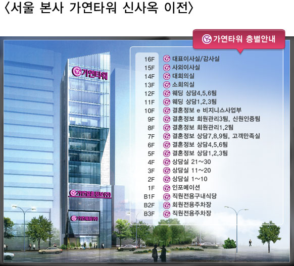 °áÈ¥Á¤º¸È¸»ç °¡¿¬(´ëÇ¥ÀÌ»ç ±è¿µÁÖ, www.gayeon.com)ÀÌ °í°´ÀÇ ¼º¿ø¿¡ ÈûÀÔ¾î ¿À´Â 2¿ù 25ÀÏ ½Å»ç¿ÁÀ¸·Î ÀÌÀüÇÑ´Ù. ¡®°í°´°úÀÇ ½Å·Ú¡¯¸¦ °æ¿µÀ̳äÀ¸·Î ½ÇõÇϰí ÀÖ´Â °¡¿¬Àº º¸´Ù ÄèÀûÇÑ È¯°æ¿¡¼ Áú ÁÁÀº ¼ºñ½º¸¦ Á¦°øÇϰíÀÚ ¿ª»ï¿ª Å×Çì¶õ·Î¿¡ À§Ä¡ÇÑ ½ÅÃà°Ç¹°ÀÎ ¡®°¡¿¬Å¸¿ö(°¡Äª)¡¯·Î »ç¿ÁÀ» ¿Å±ä´Ù. °¡¿¬Å¸¿ö´Â Áö»ó 16Ãþ, ÁöÇÏ 1ÃþÀ¸·Î ÃÑ 17ÃþÀÇ ±Ô¸ð¸¦ ÀÚ¶ûÇÏ¸ç ¿ª»ï»ç°Å¸® ¸£³×»ó½ºÈ£ÅÚ ¸ÂÀºÆí¿¡ À§Ä¡Çϰí ÀÖ¾î ¿ì¼öÇÑ Á¢±Ù¼º°ú Æí¸®ÇÑ »ýȰȯ°æÀÌ Æ¯Â¡ÀÌ´Ù. ƯÈ÷ ÃÑ 3Ãþ, 30°³ °³º° ·ëÀ¸·Î ÀÌ·ç¾îÁø ³Ð°í ÄèÀûÇÑ »ó´ã½Ç ¸¶·ÃÀ» ÅëÇØ °í°´ÀÇ ÆíÀÇ¿Í ¹ÏÀ» ¼ö ÀÖ´Â »ó´ãÀ» Á¦°øÇϸç Á÷¿øÀü¿ë ±¸³»½Ä´ç°ú ÈÞ°Ô°ø°£ µî Á÷¿øÀÇ º¹Áö¸¦ À§ÇÑ ¹è·Áµµ ¾Æ³¢Áö ¾Ê¾Ò´Ù. °¡¿¬ÀÇ ±è¿µÁÖ ´ëÇ¥ÀÌ»ç´Â ¡°°í°´ÀÇ °ü½É°ú ¼º¿ø¿¡ ÈûÀÔ¾î ¾ÕÀ¸·Î´Â »ó´ãºÎÅÍ ¼ºÈ¥¿¡ À̸£´Â Àü °úÁ¤À» °¡¿¬ ½Å»ç¿Á¿¡¼ Çѹø¿¡ Æí¸®ÇÏ°Ô ÁøÇàÇÏ½Ç ¼ö ÀÖµµ·Ï ÇÒ ¿¹Á¤¡±À̶ó¸ç ¡°°í°´°úÀÇ ½Å·Ú¸¦ ÃÖ¿ì¼±À¸·Î ÇÏ´Â °æ¿µÀ̳äÀ» ¹ÙÅÁÀ¸·Î °í°´Áß½ÉÀÇ ¼ºñ½º¸¦ Á¦°øÇϱâ À§ÇØ ´õ¿í ³ë·ÂÇÒ °ÍÀ» ¾à¼Ó µå¸°´Ù¡±°í Æ÷ºÎ¸¦ ¹àÇû´Ù. ÇÑÆí Áö³ 2006³â ¼³¸³µÈ °¡¿¬Àº ISOǰÁú°æ¿µ½Ã½ºÅÛ ÀÎÁõ, INNOBIZ ÀÎÁõ, º¥Ã³±â¾÷ÀÎÁõ µî ±â¼ú·Â°ú ¼ºÀå·ÂÀ» ÀÎÁ¤ ¹ÞÀº µ¶ÀÚÀûÀΠȸ¿ø°ü¸®½Ã½ºÅÛ°ú ¸ÅĪ½Ã½ºÅÛÀ¸·Î, ¡®2011 ¼ÒºñÀÚÀÇ ¼±Åᯠ°áÈ¥Á¤º¸ ºÎ¹® ´ë»ó, ¡®2011 ´ëÇѹα¹ Áß¼Ò±â¾÷ Çõ½Å´ë»ó¡¯ Áß¼Ò±â¾÷ûÀå»ó µîÀ» ¼ö»óÇÑ ¹Ù ÀÖ´Ù.