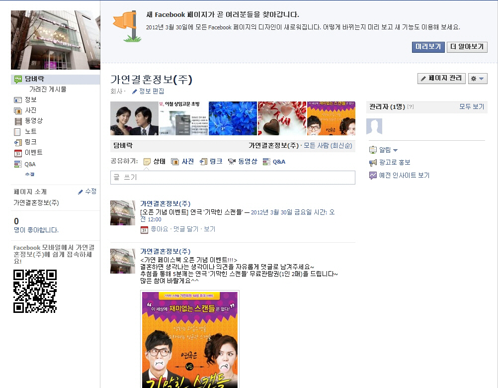 °áÈ¥Á¤º¸¾÷ü °¡¿¬°áÈ¥Á¤º¸(´ëÇ¥ÀÌ»ç ±è¿µÁÖ, www.gayeon.com)°¡ °í°´°úÀÇ Ä¿¹Â´ÏÄÉÀÌ¼Ç °È¸¦ À§ÇØ °ø½Ä ÆäÀ̽ººÏ(www.facebook.com/gayeonlove)À» ¿ÀÇÂÇß´Ù. ¾ÕÀ¸·Î °¡¿¬Àº ÆäÀ̽ººÏÀ» ÅëÇØ ¿¬¾ÖÇа³·Ð, ¸Å´ÏÀúÄ®·³ µî Àç¹ÌÀÖ´Â ÀÐÀ»°Å¸®¸¦ ºñ·ÔÇØ °í°´µéÀÌ ±Ã±ÝÇØÇÒ ¸¸ÇÑ »õ·Î¿î °áÈ¥ Á¤º¸µéÀ» ½Ç½Ã°£À¸·Î ¾÷µ¥ÀÌÆ® ÇØ °øÀ¯ÇÒ ¿¹Á¤ÀÌ´Ù. ¶ÇÇÑ ¼³¹®Á¶»ç, À̺¥Æ® µî °í°´ÀÌ Á÷Á¢ Âü¿©ÇÒ ¼ö ÀÖ´Â ÄÜÅÙÃ÷¸¦ ¼ö½Ã·Î ±âÈ¹ÇØ Ȱ¹ßÇÑ Âü¿©¸¦ À¯µµÇÒ °èȹÀÌ´Ù. °¡¿¬Àº ±× ù ¹øÂ° À̺¥Æ®·Î ¡®°áÈ¥ÇÏ¸é »ý°¢³ª´Â °Í¡¯¿¡ ´ëÇÑ ÀǰßÀ» ÀÚÀ¯·Ó°Ô ´ñ±Û·Î ³²±â¸é Ãß÷À» ÅëÇØ ¿¬±Ø ¡®±â¸·Èù ½ºÄµµé¡¯ÀÇ ¹«·á°ü¶÷±Ç(5¸í)À» Á¦°øÇÏ´Â ÆäÀ̽ººÏ ¿ÀÇ ±â³ä À̺¥Æ®¸¦ ¸¶·ÃÇß´Ù. °¡¿¬ÀÇ ±è¿µÁÖ ´ëÇ¥ÀÌ»ç´Â ¡°SNSÀÇ ¹ß´Þ·Î °í°´°ú Á÷Á¢ ¼ÒÅëÇÒ ¼ö Àִ ä³ÎÀÌ ´Ã¾î³ ¸¸Å ÆäÀ̽ººÏ ¿ÀÇÂÀ» ÅëÇØ ¾ðÁ¦³ª °í°´ÀÇ ¸ñ¼Ò¸®¿¡ ±Í ±â¿ïÀÌ´Â °¡¿¬ÀÌ µÇµµ·Ï ³ë·ÂÇϰڴ١±°í ¸»Çß´Ù.