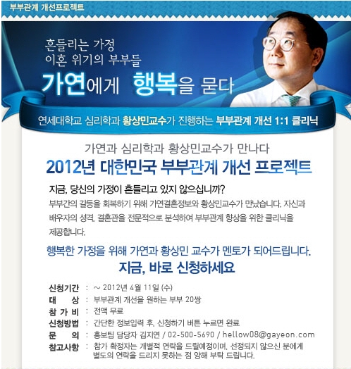 ÆÄÀ̳½¼È´º½º ¿Ü -°áÈ¥Á¤º¸È¸»ç °¡¿¬, ¡®2012 ´ëÇѹα¹ ÀÌÈ¥ ±Øº¹ ÇÁ·ÎÁ§Æ®¡¯ ½Ç½Ã